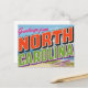 Celebrate the "First in Flight" State with this bright, retro "Greetings from North Carolina" postcard. This vintage large-letter design features a classic biplane on a sandy beach, paying homage to the Wright Brothers' historic achievement at Kitty Hawk. The vibrant, bold colors and vintage style make it a fantastic souvenir for North Carolina residents, history buffs, aviation enthusiasts, beach lovers, and collectors of Americana travel art. A unique way to send greetings or display nostalgia.