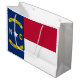 This design features the state flag of North Carolina, which is in the southeastern region of the United States. The state flag bears the dates of the Mecklenburg Declaration of Independence (May 20, 1775) and of the Halifax Resolves (April 12, 1776), both important events in the movement for American independence. Raleigh is the capital of North Carolina, while Charlotte is the state's largest city. Other major cities in North Carolina include Greensboro, Durham, Winston-Salem, Fayetteville, Cary, Wilmington, High Point and Concord.