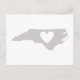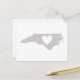 Keeping in touch with a North Carolinian you love has never been easier then with a North Carolina state shape filled in with solid grey background and a heart cutout postcard.