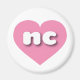 This magnet features a vibrant pink heart containing the bold white, rounded lower case letters nc, a playful version of the abbreviation of North Carolina, the tar heel state.