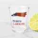 Show everyone your love for the state of North Carolina with this shot glass! It features a map of North Carolina filled in with the colours of the state flag. The font and colour of the text can be changed to fit your preference.