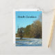This postcard features a photo taken the day after a somewhat rare accumulating snowfall in Wilson County, North Carolina. The sky is a brilliant "Carolina blue." Beneath it, a path, covered with snow and a few tire tracks winds away towards some woods. A really colourful and beautiful picture.