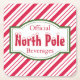 Candy cane stripes decorate these festive North Pole beverage coasters. Use these fun holiday coasters for a Christmas party, office party, office, Christmas, Christmas dinner, holiday party, open house, cookie swap, cookie exchange, party, drinks, beverages, etc....The design is from original art.