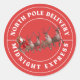 North Pole Delivery sticker featuring Santa Clause and reindeer.