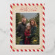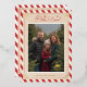 Celebrate the magic of the holiday season with our whimsical North Pole Express train ticket Christmas foil photo card. Designed to resemble a delightful train ticket to the North Pole, this card will add a touch of festive fun to your holiday greetings. The card features a charming red and white candy cane stripe border and gold foil stripes, evoking the sweet and joyful spirit of Christmas. Customize the North Pole Express train ticket Christmas card with your favourite family photos, the year, and a personal seasonal greeting message to make it truly unique. Original Design and illustrations by Moodthology Papery