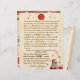 Ordering the North Pole Personal Christmas Letters From Santa is not official without a proper wax seal from the North Pole and the signature of "Father Christmas." Santa appoints his Quillwisps to help him read and write all the letters of the billions of children who send letters around the calendar. Mrs Claus says these are invaluable keepsakes to remember the most wonderful time of every year. Change the wording of the child's name by clicking on "Edit this design" or clicking the blue "Customize it." Feel free to add text or images to this design, or alter fonts and/or colors. If you had in mind to purchase matching envelopes, wax seals, thank-you letters, or any other items to make it complete and need assistance, please click the message button under my profile picture on the main page https://www.zazzle.com/store/zaralla