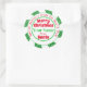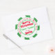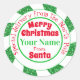 These festive, custom Christmas themed sticker gift tags feature an outer frame with swirled a faux green glitter peppermint candy design. The phrase "Special delivery from the North Pole" is printed in a circular pattern around the text area. The greeting "Merry Christmas" is printed at the top of the sticker in a whimsical red font. A sample name is printed below it in green, which you can personalize to include your own custom name or recipient. "From Santa" is printed in the bottom portion.