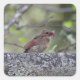 Baby cardinal standing on a tree branch with a beak full of berries she found herself