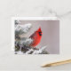 Male northern cardinal sitting in an evergreen tree following a winter snowstorm