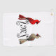This is an illustration of a pair Northern Cardinal. The male songbird is mostly red with a black face, and a reddish pink beak. The female is a soft brown with hints of red, with a red beak.