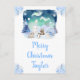 This cute and whimsical Christmas card can be personalized with your name or title, such as mom, daughter, granddaughter, niece, friend etc. It features a watercolor winter wonderland scene with adorable arctic animals, such as a polar bear, penguin, cat, owl, seal and a moose. In the background are the northern lights, snow capped mountains and trees. The text combines handwritten script and sans serif fonts for a stylish and modern look. Falling snowflakes and beautiful blue floral arrangements give a winter feel.