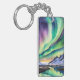 This keychain features a watercolor portrait of the northern lights in Iceland.