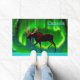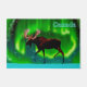 An ever so slightly stylized image of a moose silhouetted against the Northern Lights. Text reading “Canada” appears in glowing blue.