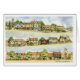 An illustration in watercolour of Northleach market place - three views in one.