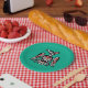 Decorate your party table with these practical paper plates with a beautiful Kaigani Thunderbird from British Columbia, Canada. The background is green.