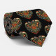 Cette cravate présente un style norvégien romancé Folk Art Heart design sur un arrière - plan noir.