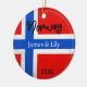 A personalized Flag Souvenir Ornament designed to celebrate your unforgettable trip to Norway. Whether you travelled for work, enjoyed a romantic getaway, or participated in a school exchange program, this ornament commemorates a special moment you’ll always cherish. Celebrate the year of your journey—whether as a married couple, with family, or on a solo adventure—with our beautifully crafted Flag Souvenir Ornament.