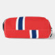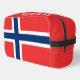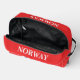 Norwegian flag personalized toiletry travel kit bag. Custom red Dopp Kit design. Personalize with name or monogram optionally. Colours can be changed too. Scandinavian pride.