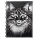 Notebook in a closeup portrait of a Norwegian Forest cat with detailed, grayscale shading, showcasing its intricate fur patterns. The use of black and white contrasts sharply to highlight the feline's face.