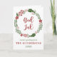 Green and red Christmas holiday wreath holiday card, with the words Merry Christmas in Norwegian & Swedish: God Jul.