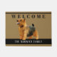 Cute doormat featuring an illustration of a Norwich Terrier. Customizable background colour and texts. Perfect gift for the dog lover or Norwich Terrier owner.