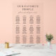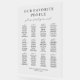 Grand panneau en acrylique clair de 24"x36" avec le message "nos gens préférés, s'il vous plaît trouvez votre siège". Conception pouvant accueillir jusqu'à 12 tables et 120 personnes (jusqu'à 10 personnes par table). Pour supprimer un tableau, cliquez sur le bouton pour modifier la conception.