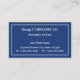 This old fashioned business card design features a professional’s name, a business name, a job role name, and contact details that can be customized. It also has a double-line white border. Business cards like these might be used by a professional such as an attorney or a consultant.
