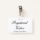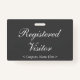 This classic badge design features the message "Registered Visitor", and a customizable company name or other custom message. A badge like this could be used to indicate that a visitor or guest at a workplace is allowed to be there. [~Z0000307]
