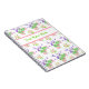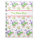 A pretty, customizable spiral notebook, with a pattern of pink Roses, creamy white Mock Orange Blossom and purple Lavender, from a handpainted watercolour design by Judy Adamson.
