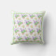 A beautiful throw pillow or scatter cushion with a pretty pattern of pink Roses, creamy white Mock Orange Blossom and purple Lavender with a green and white border, from a handpainted watercolour design by Judy Adamson.