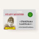 This nostalgic and classic staff badge design features personalized information such as a portrait photo, a business/organization logo, a staff member name, and a role name. A badge like this could be used to identify somebody as a staff member of a business, company, or organization. [~Z0000450]