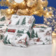 A vintage holiday train chugs through a snowy landscape of pine trees and cozy cabins in this nostalgic red and green toile pattern. Evoking childhood memories of toy train sets and Christmas magic, this timeless wrapping paper brings a sense of wonder to your gift-giving tradition.