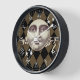 A nostalgic vintage steampunk fantasy man in the moon design with a harlequin checked background. In antique sepia tones.