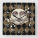 A nostalgic vintage steampunk fantasy man in the moon design with a harlequin checked background. In antique sepia tones.
