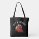 Totally thrilled with this bag. The material is thick and durable (this is my third purchase of this tote bag). The printing turned out amazing. The bright red was just as bright as it is on the computer. So impressed with this bag.