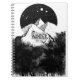 Black and white woods and mountains surreal illustration with calligraphy quote - "Not all who WANDER are lost"