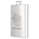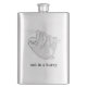 The product is a good size and came exactly as it was pictured. The lid is not attached to the flask, which could be dangerous on drunken nights... The print came out surprisingly well and looks very sharp. Would definitely recommend.