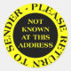 A useful not known / return to sender sticker. Designed to be eye catching (you want the postman to notice this) Clear and easy to read, using a stylish clear font which makes the message clear.