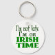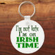 This funny Irish saying key chain reads I'm not late, I'm on Irish Time, with Celtic knotwork letters.