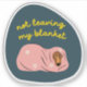 Feeling like the world has you down? Want to stay in your blanket? This sticker has you covered—pun intended! Perfect for dog fans, journalers, people who understand that sometimes you just want to say, "not leaving my blanket." This sticker gives you the courage to face the world—tomorrow. The shape, text and colours give a mid-century vibe. Navy background, yellow text and a classic mid-century modern blanket snuggled around a brown dog.