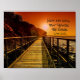 Beautiful inspirational quote poster depicts the setting sun over a wooden bridge surrounded by the sea and features Bible Verse Luke 22:42.*