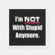 I'm Not With Stupid Anymore Funny, perfect gift for that friend going through a tough breakup. Have you seen those shirts (I'm with Stupid?) Well, if you or someone you know is no longer with STUPID...this is the perfect item for them. It is funny, sarcastic and clever. Great for a divorce or breakup party or celebration
