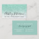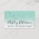 An elegant modern, stylish notary business card with elegant modern simple hand lettering style typography in white on a faux chic mint green glitter and white marble trendy and elegant background. all text is customizable, add your social media.