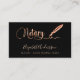An elegant business card on a black background and a rose gold signature signing pen. Elegant hand lettered style script. Personalize and add Your name, title, contact info and your own QR code to your website address.