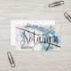 A modern, stylish notary logo business card with calligraphy script typography and feather pen. Watercolor abstract background. Ideal for notary, professionals, lawyers, loan agents, mortgage agents....