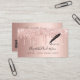 An elegant and glamourous business card on a rose gold background decorated with drips, paint dripping look on front and a black signature signing pen. Elegant hand lettered style script. Personalize and add Your name, title, contact info and your own QR code to your website address.