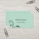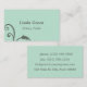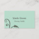 Notary Public name and title on front with a dark green flourish on a light green background. The back has your information.