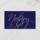Notary script faux rose gold typography navy blue business card