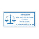 Professional blue notary stamp with scales of justice symbol and easy personalizable text.