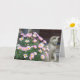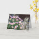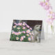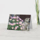 Blank card ready for you to add your own message. Features pink daisies and sculpture cat.